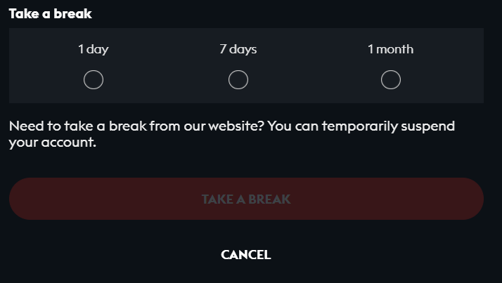 Once the break is activated, you can still log in and get access to the withdrawals page for example, but you can no longer play during the defined period. Once the period has ended, all the features will be automatically reactivated on your account and you can play and bet again.