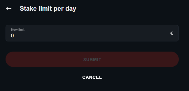 In addition to deposit and loss limits, you can also set stake limits. These limit your spending by setting a maximum amount of stakes for a period of 24 hours, 7 days and 30 days.
