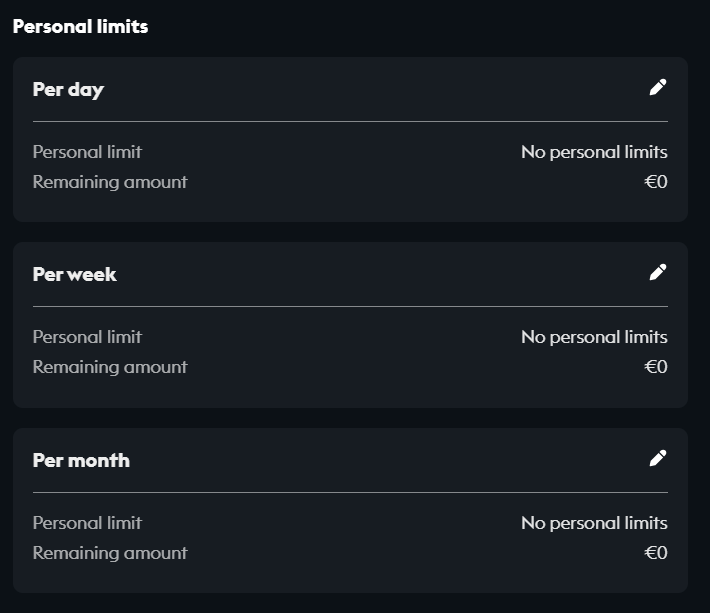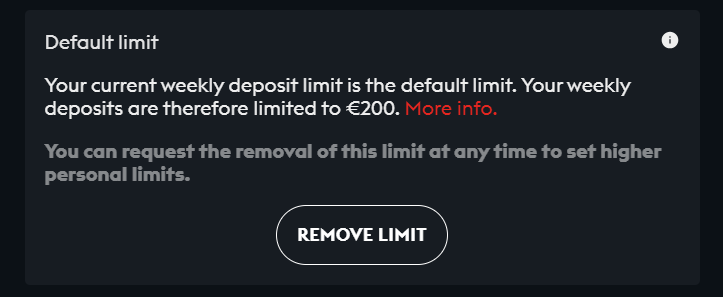 As of 20 October 2022, Belgian regulations require a default limit of €200 per week. If you wish, you can ask to deactivate this default limit from your account settings. Your request will then be forwarded to the Belgian Gaming Commission, which will give you a (positive or negative) response within 72 business hours.