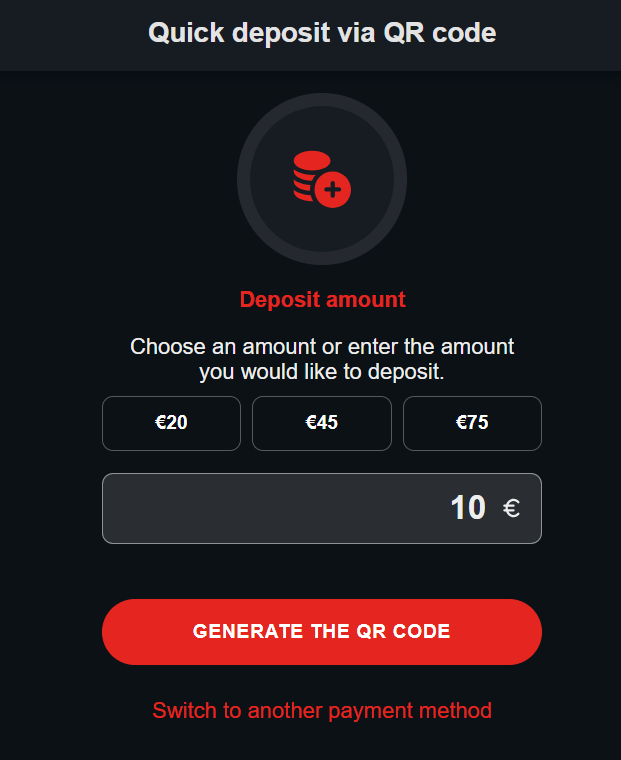 2. Indicate the amount you wish to deposit and click on “Generate the QR code”: