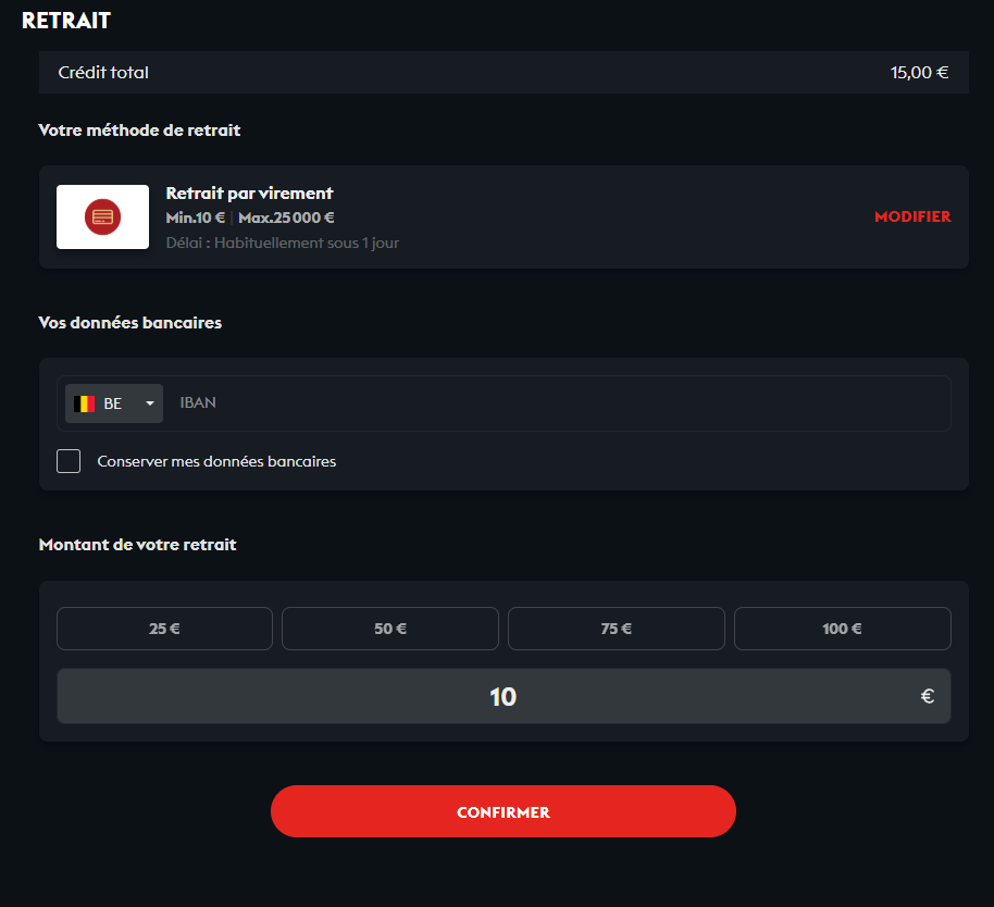 Vous pourrez ensuite demander un nouveau retrait en complétant les données de votre nouveau compte bancaire, comme mentionné plus haut.