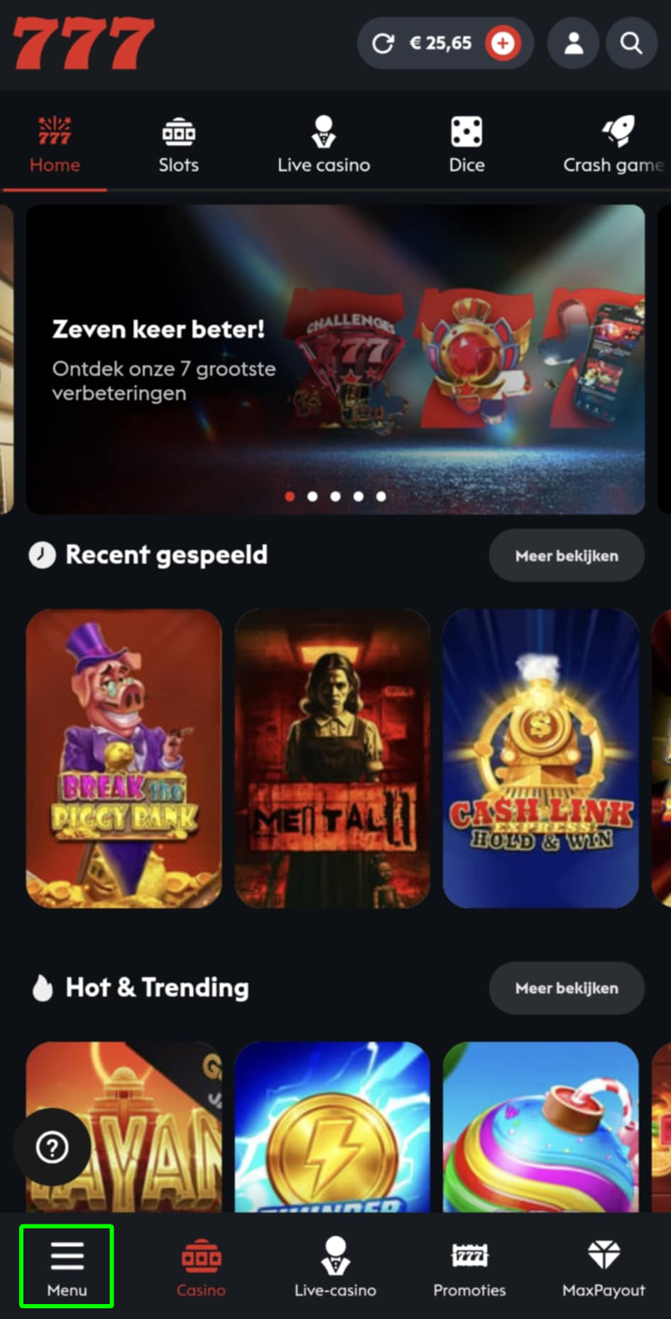 Selecteer het "Menu" linksonder op je scherm: