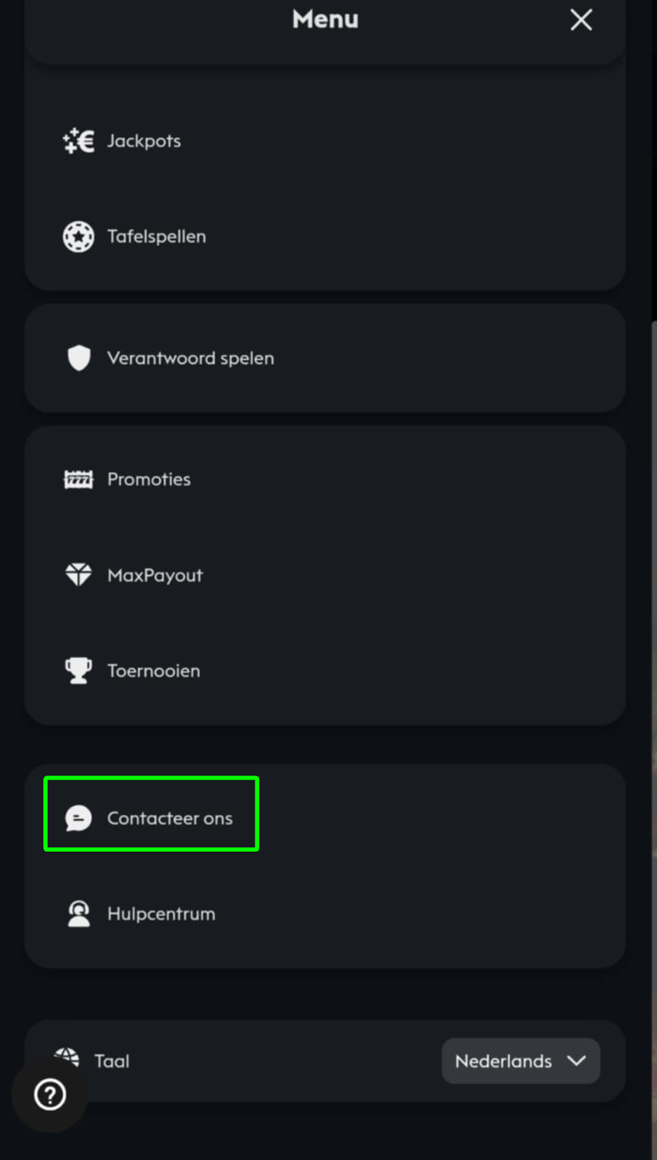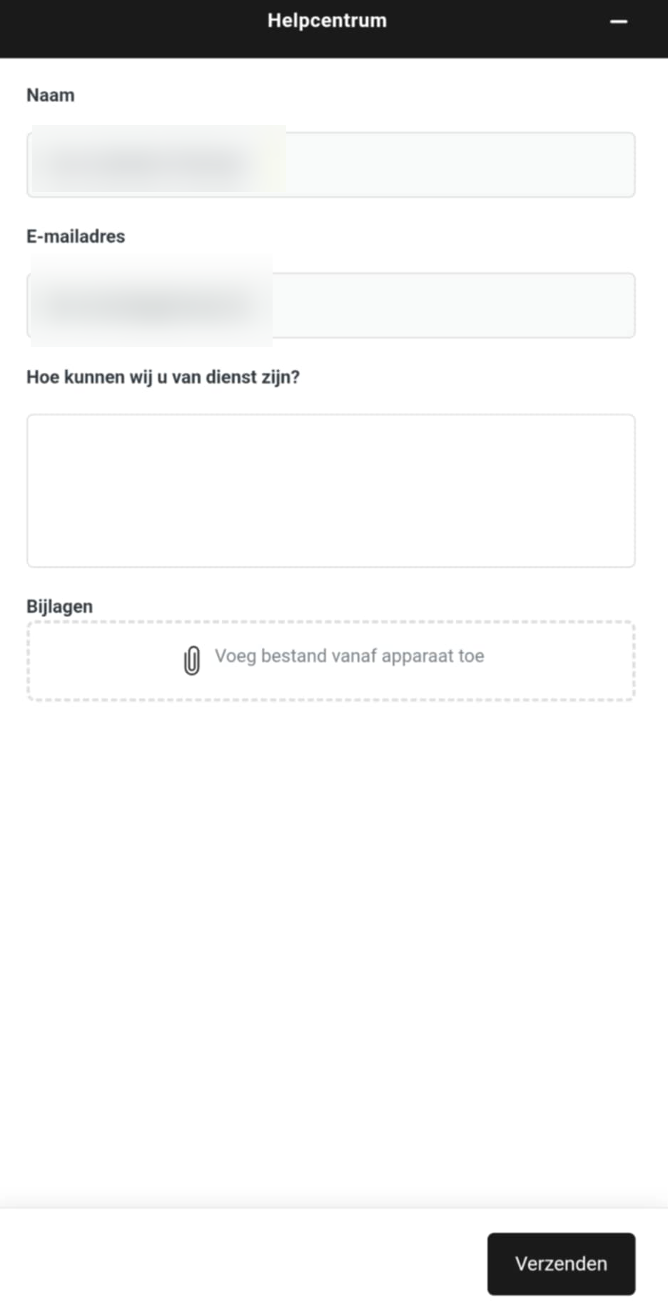 Daarna krijg je toegang tot "Neem contact met ons op":